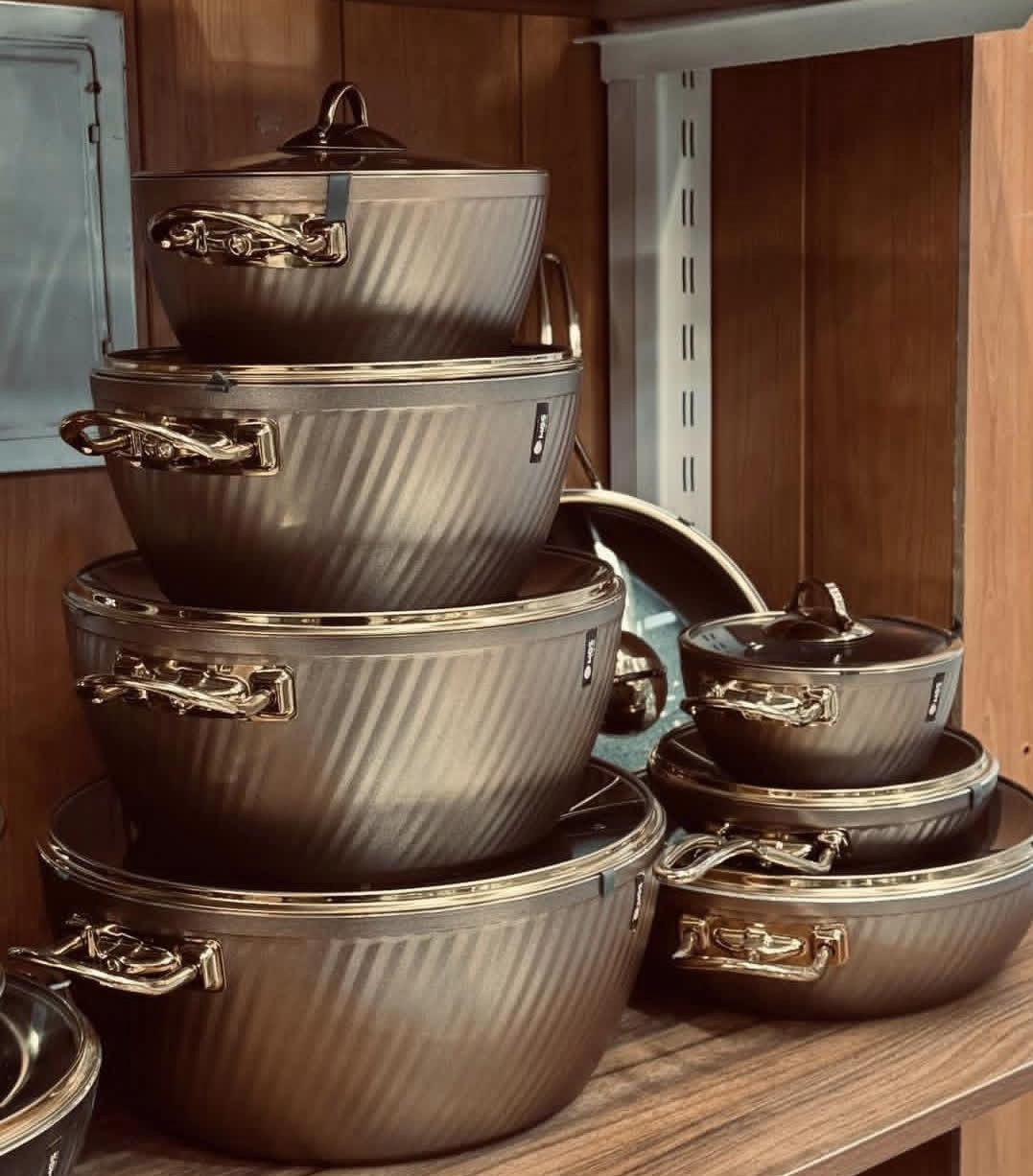سرویس قابلمه ۱۶ پارچه یراق طلایی mgs رنگ تیتانیوم
