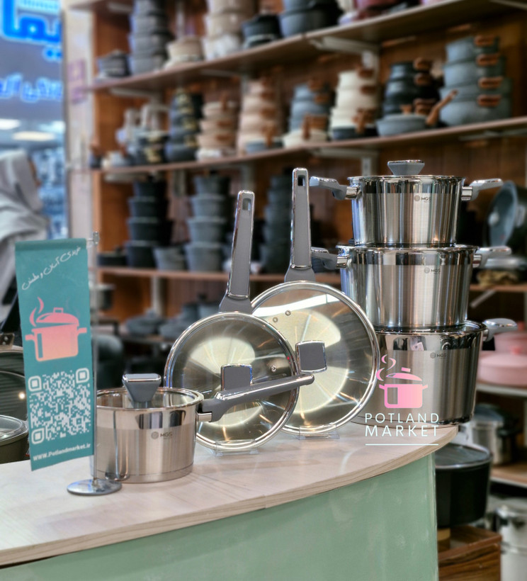 قیمت و خرید جدید ترین سرویس قابلمه ۱۲ پارچه استیل mgs ام جی اس