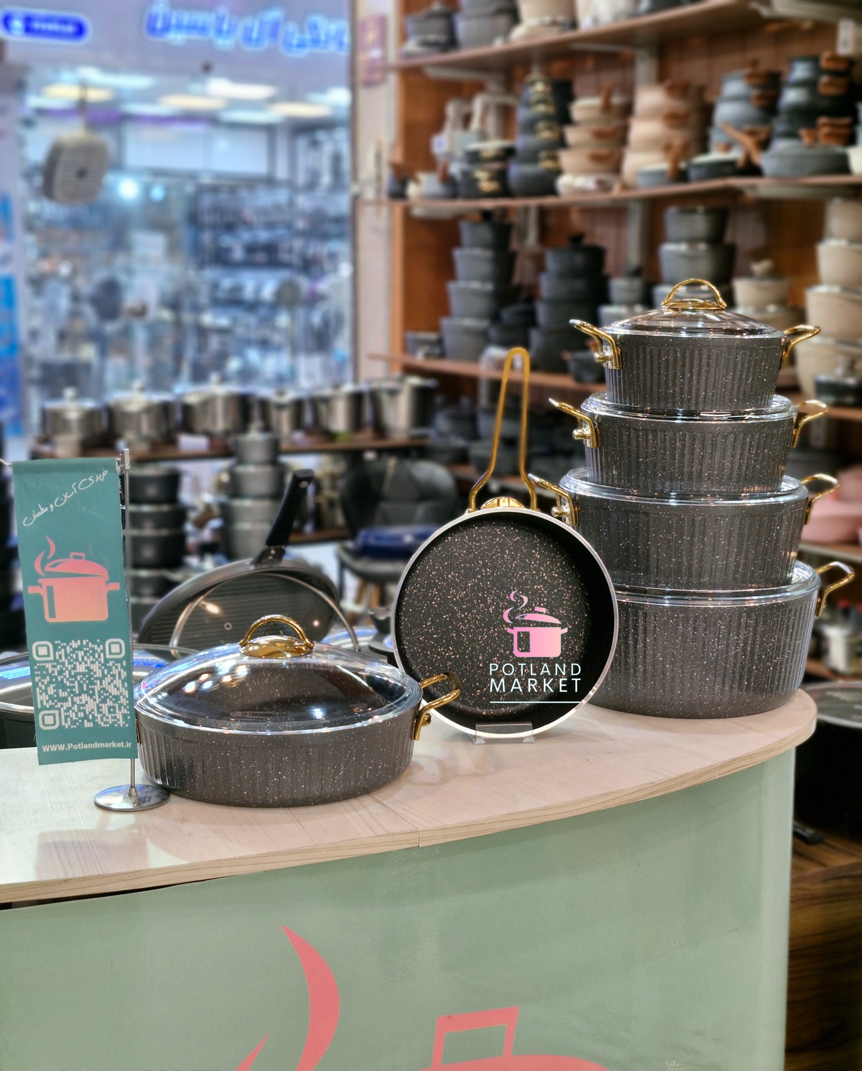 سرویس قابلمه ۱۱ پارچه چدن گرانیت pmt رنگ طوسی