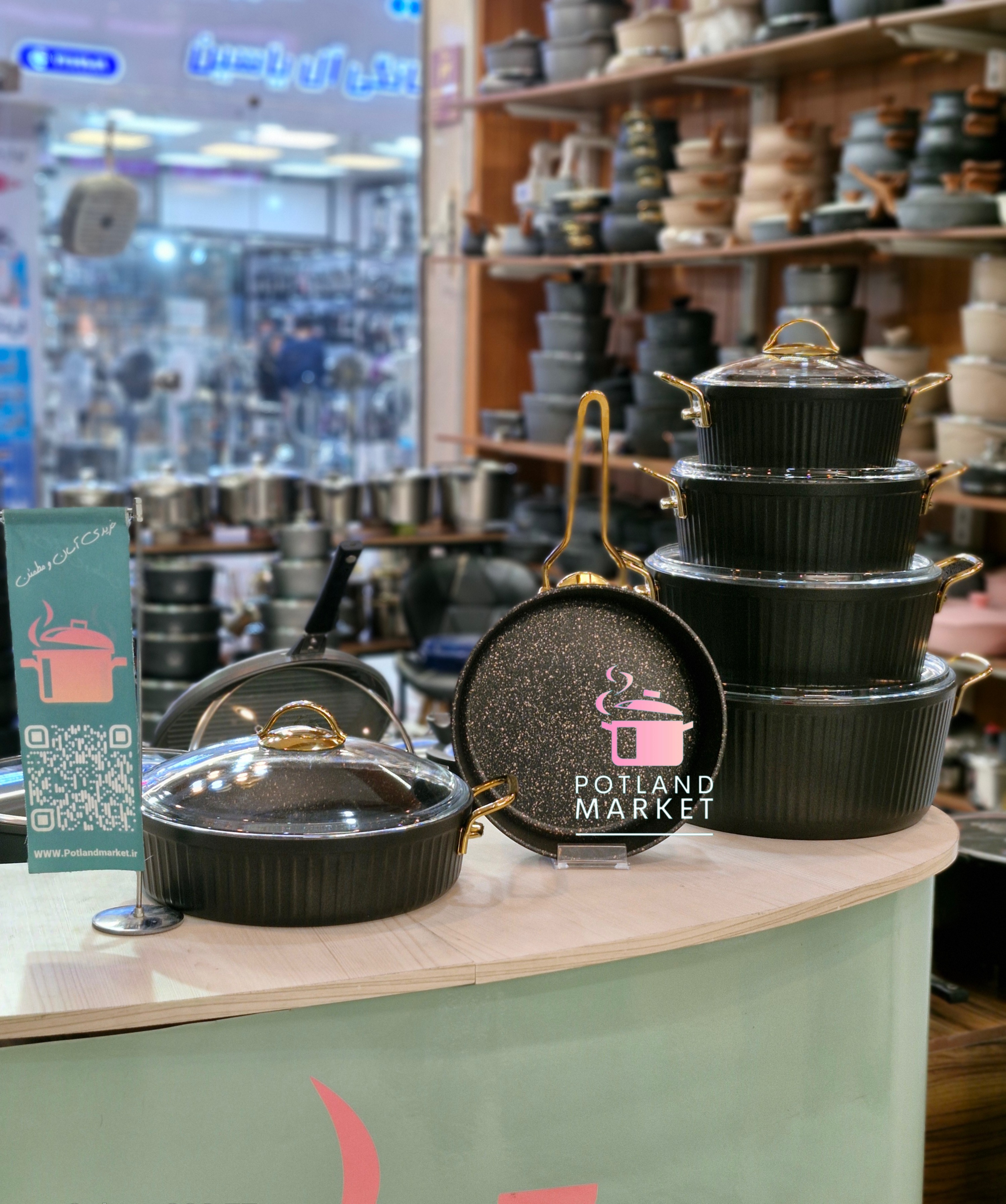 سرویس قابلمه ۱۱ پارچه چدن گرانیت pmt رنگ مشکی